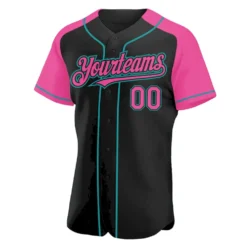 Custom Black Pink-Teal Authentic Raglan Sleeves Baseball Jersey
