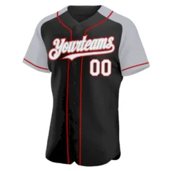 Custom Black White Gray-Red Authentic Raglan Sleeves Baseball Jersey