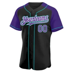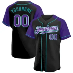 Custom Black Purple-Teal Authentic Raglan Sleeves Baseball Jersey