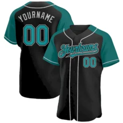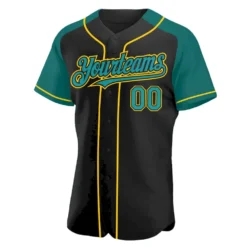 Custom Black Teal-Yellow Authentic Raglan Sleeves Baseball Jersey