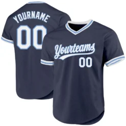 Custom Navy White-Light Blue Authentic Throwback Baseball Jersey