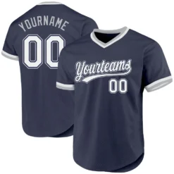 Custom Navy White-Gray Authentic Throwback Baseball Jersey