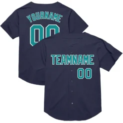 Custom Navy Teal Authentic Throwback Baseball Jersey