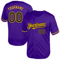 Custom Purple Black-Gold Mesh Authentic Throwback Baseball Jersey