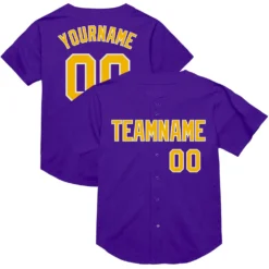 Custom Purple Gold-White Mesh Authentic Throwback Baseball Jersey