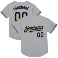 Custom Gray Navy-Old Gold Mesh Authentic Throwback Baseball Jersey