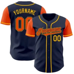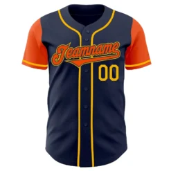 Custom Navy Orange-Gold Authentic Two Tone Baseball Jersey