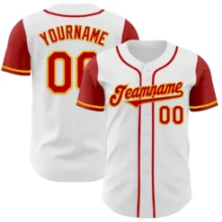 Custom White Red-Gold Authentic Two Tone Baseball Jersey