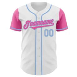 Custom White Pink-Light Blue Authentic Two Tone Baseball Jersey