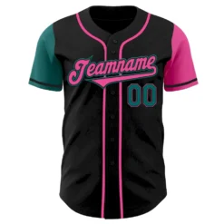 Custom Black Teal-Pink Authentic Two Tone Baseball Jersey