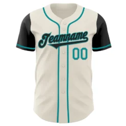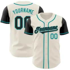 Custom Cream Black-Teal Authentic Two Tone Baseball Jersey
