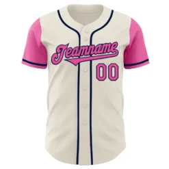 Custom Cream Pink-Navy Authentic Two Tone Baseball Jersey