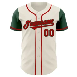 Custom Cream Red-Green Authentic Two Tone Baseball Jersey