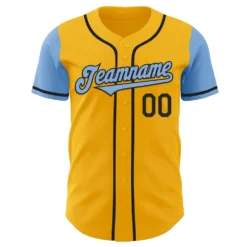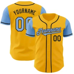 Custom Gold Light Blue-Black Authentic Two Tone Baseball Jersey