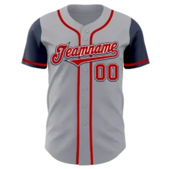 Custom Gray Red-Navy Authentic Two Tone Baseball Jersey