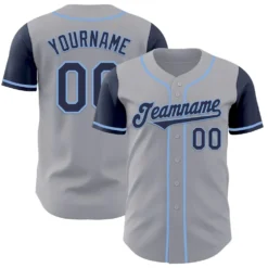 Custom Gray Navy-Light Blue Authentic Two Tone Baseball Jersey