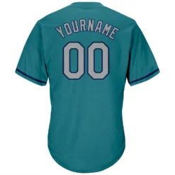 Custom Aqua Gray-Navy Authentic Throwback Rib-Knit Baseball Jersey Shirt