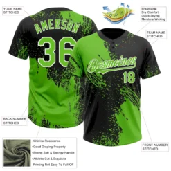 Custom Black Aurora Green-White 3D Pattern Abstract Brush Stroke Two-Button Unisex Softball Jersey