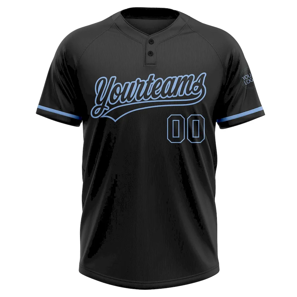 Custom Black Black-Light Blue Two-Button Unisex Softball Jersey