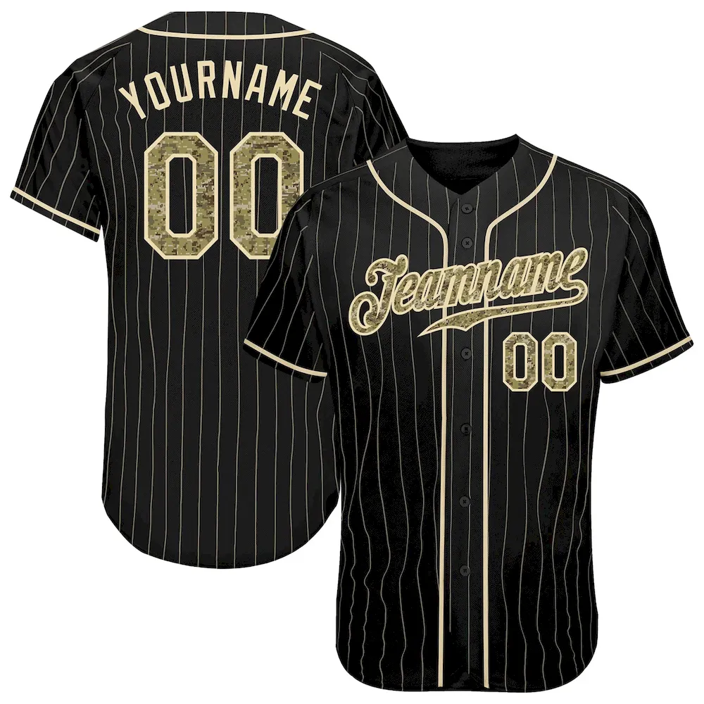 Custom Black Cream Pinstripe Camo-Cream Authentic Baseball Jersey