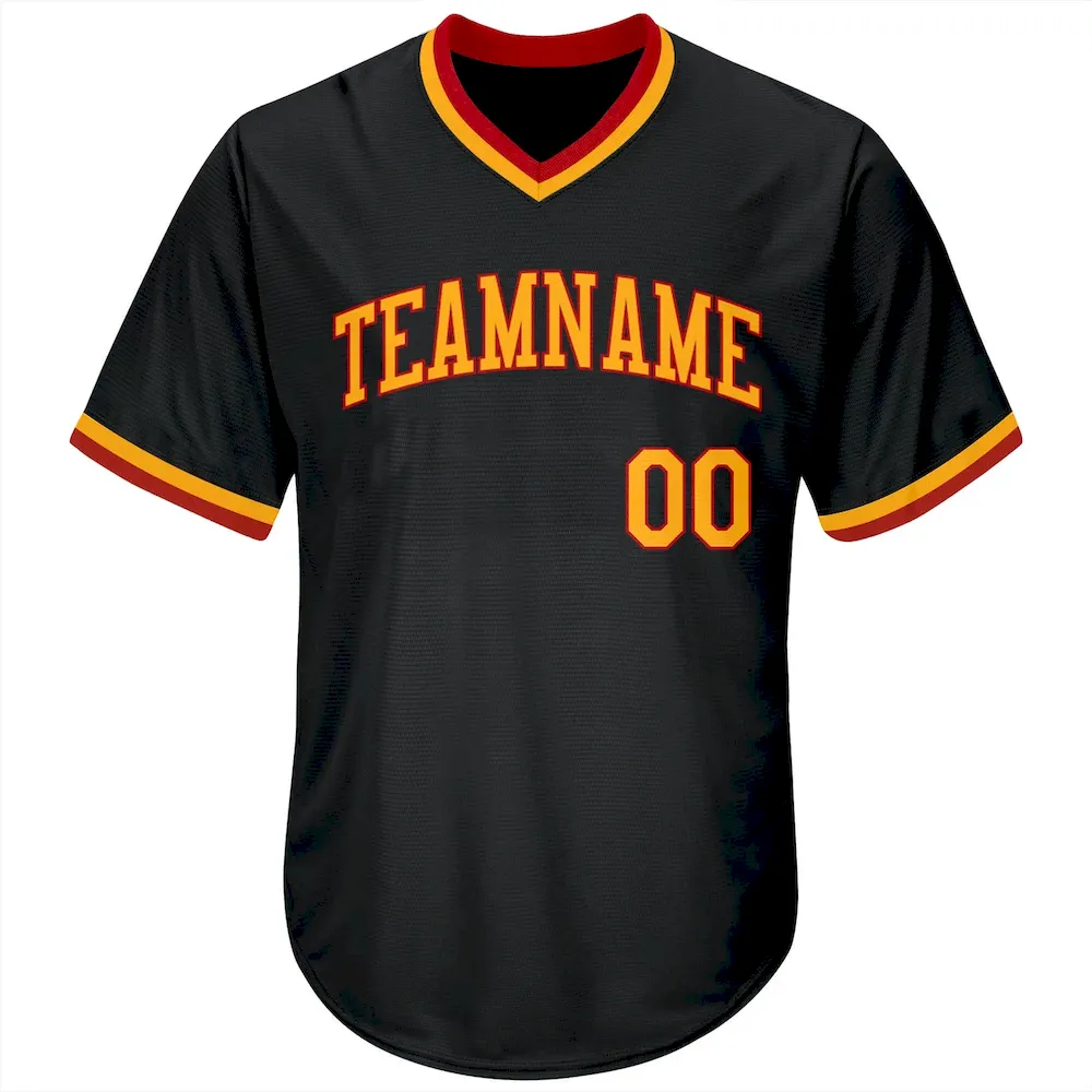 Custom Black Gold-Red Authentic Throwback Rib-Knit Baseball Jersey Shirt