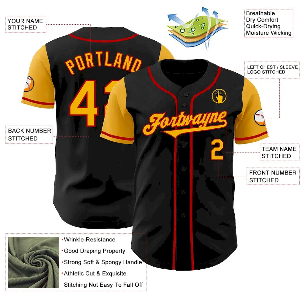 Custom Black Gold-Red Authentic Two Tone Baseball Jersey