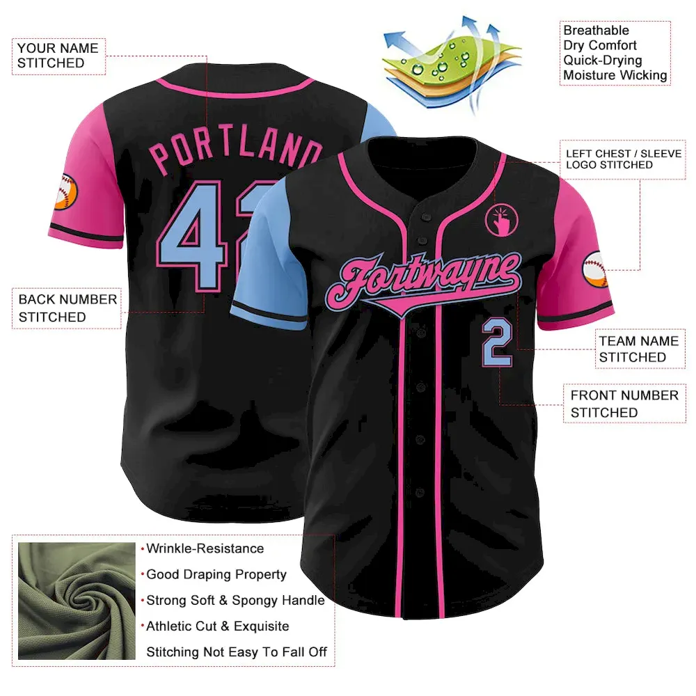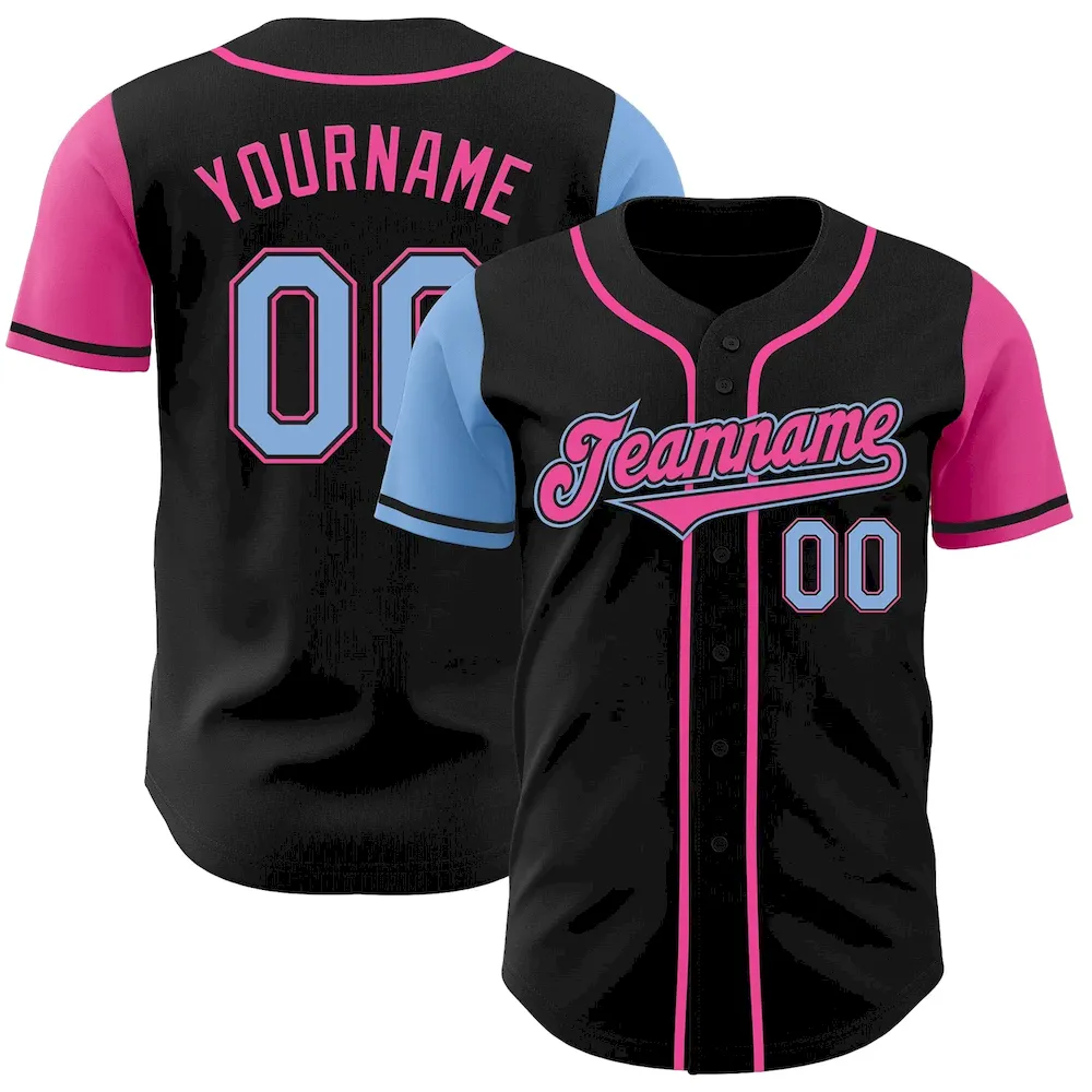 Custom Black Light Blue-Pink Authentic Two Tone Baseball Jersey