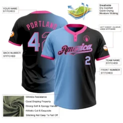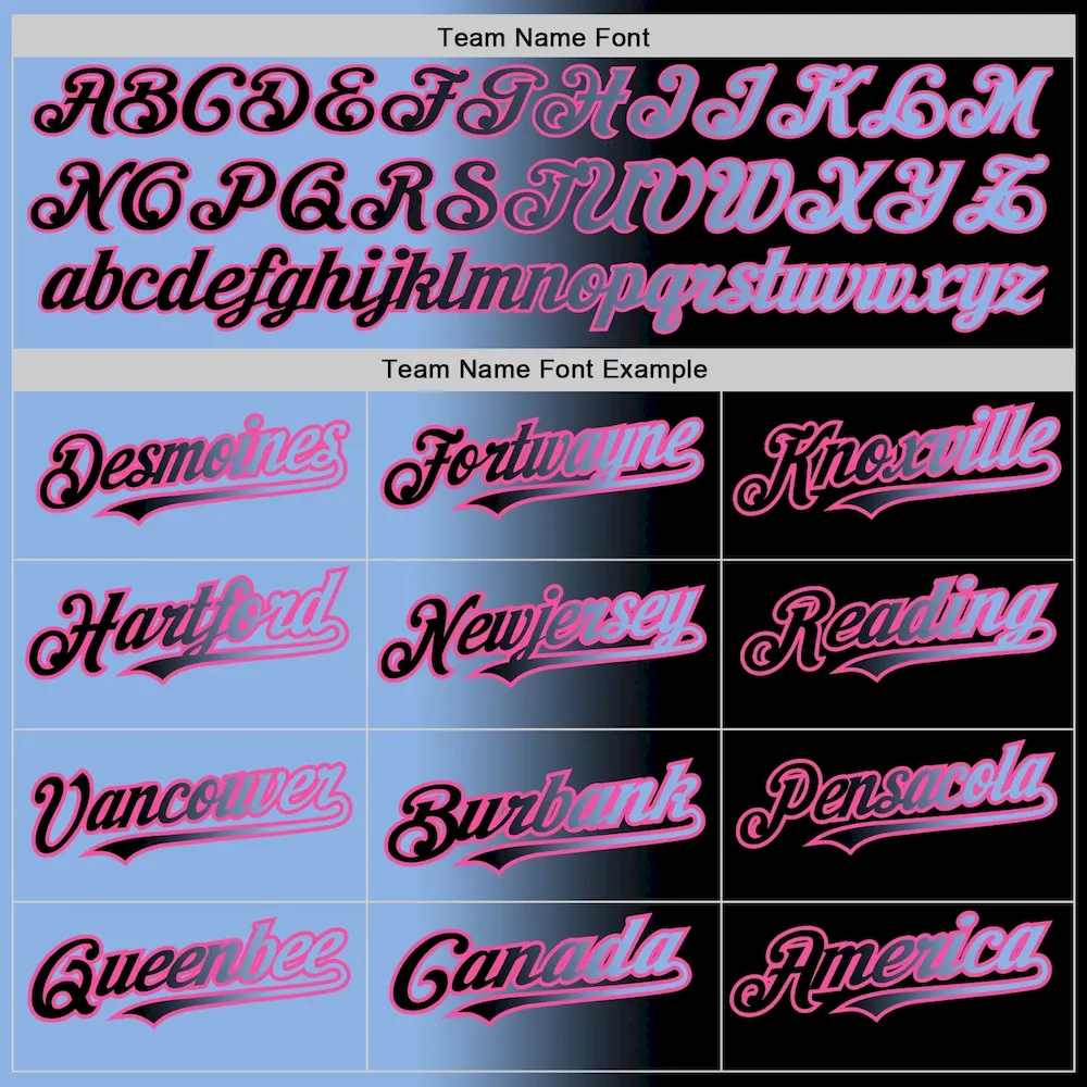 Custom Black Light Blue-Pink Gradient Fashion Two-Button Unisex Softball Jersey