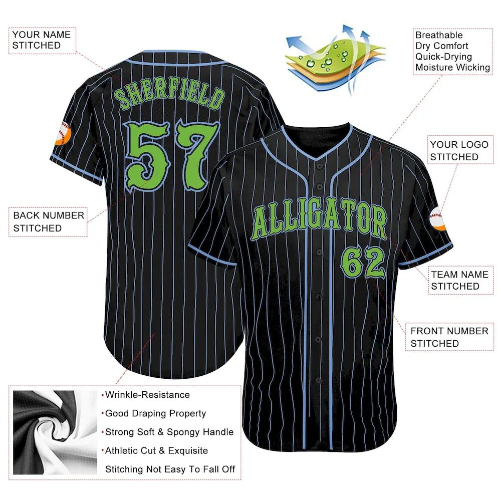 Custom Black Light Blue Pinstripe Neon Green Authentic Baseball Jersey