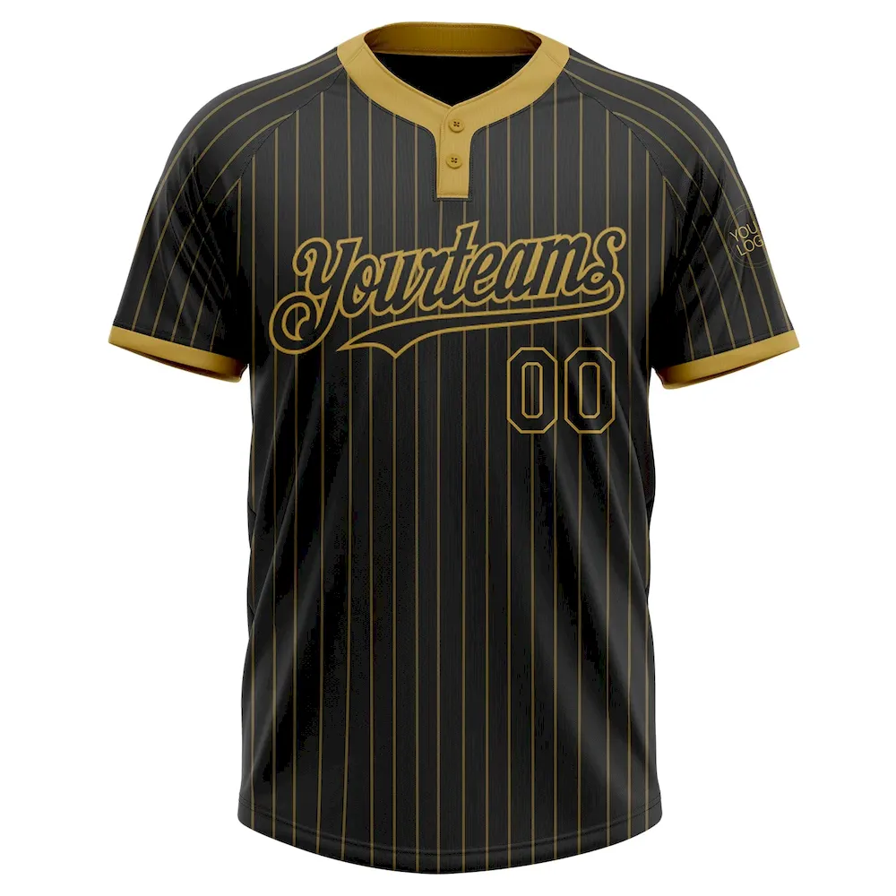 Custom Black Old Gold Pinstripe Old Gold Two-Button Unisex Softball Jersey