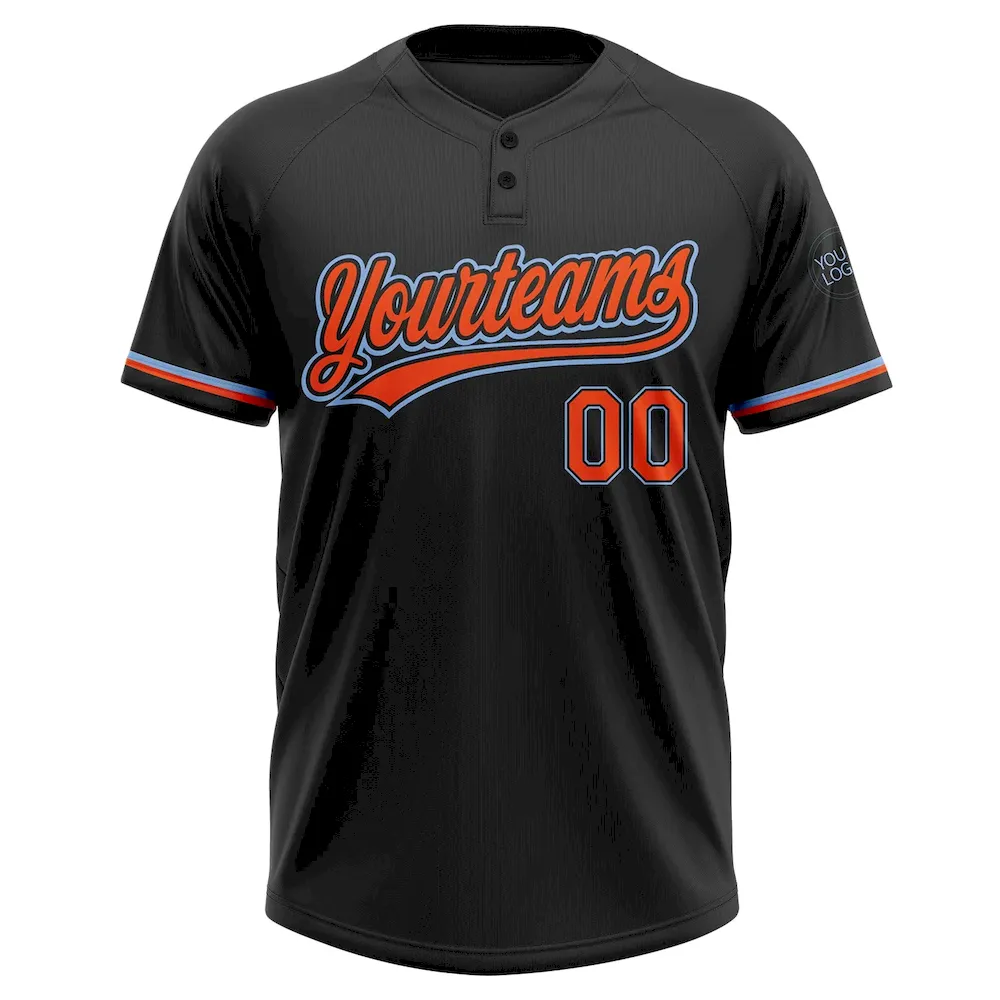 Custom Black Orange-Light Blue Two-Button Unisex Softball Jersey