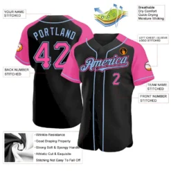 Custom Black Pink-Light Blue Authentic Raglan Sleeves Baseball Jersey