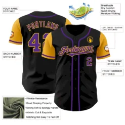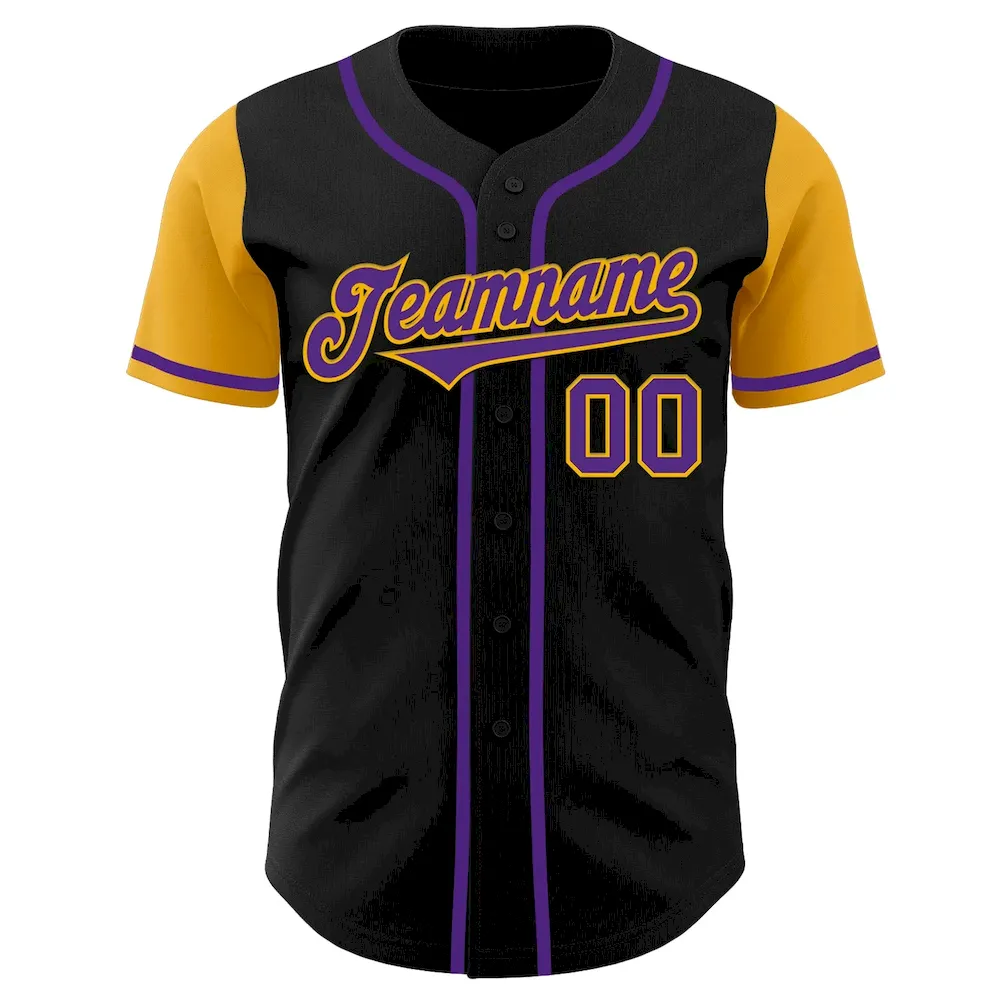 Custom Black Purple-Gold Authentic Two Tone Baseball Jersey