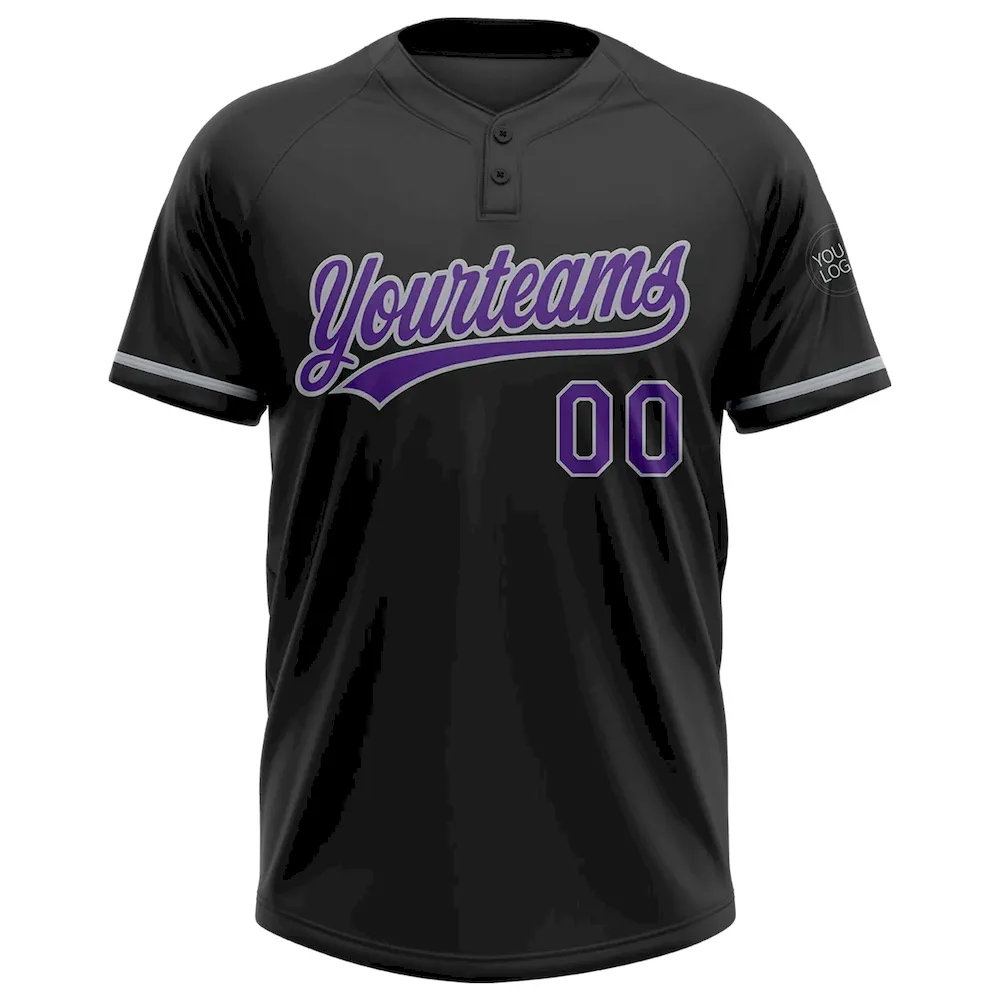 Custom Black Purple-Gray Two-Button Unisex Softball Jersey
