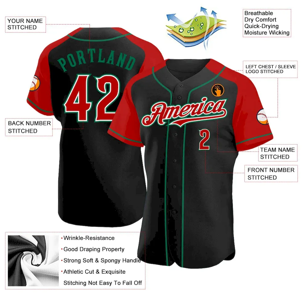 Custom Black Red-Kelly Green Authentic Raglan Sleeves Baseball Jersey