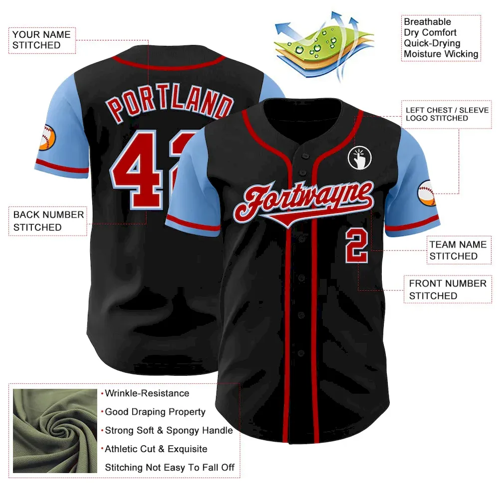 Custom Black Red-Light Blue Authentic Two Tone Baseball Jersey