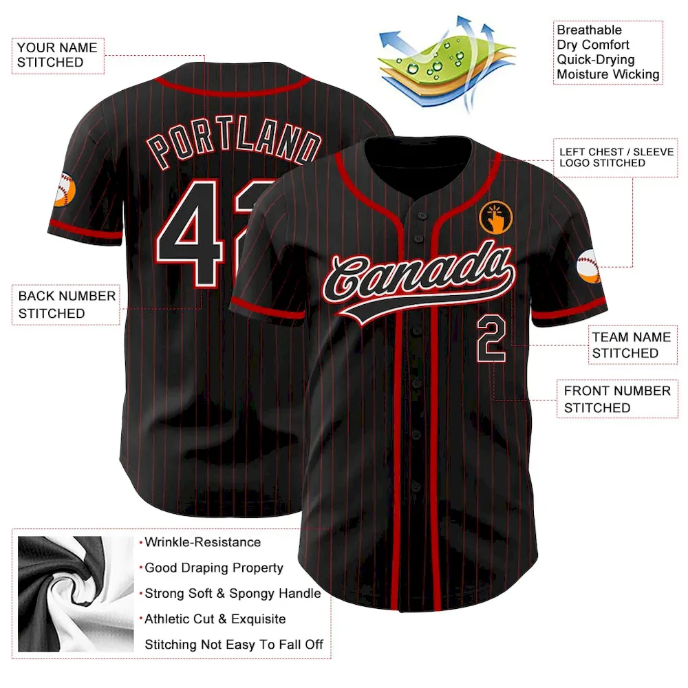 Custom Black Red Pinstripe Black Authentic Baseball Jersey