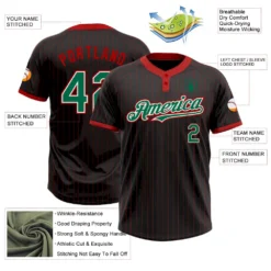 Custom Black Red Pinstripe Kelly Green-White Two-Button Unisex Softball Jersey