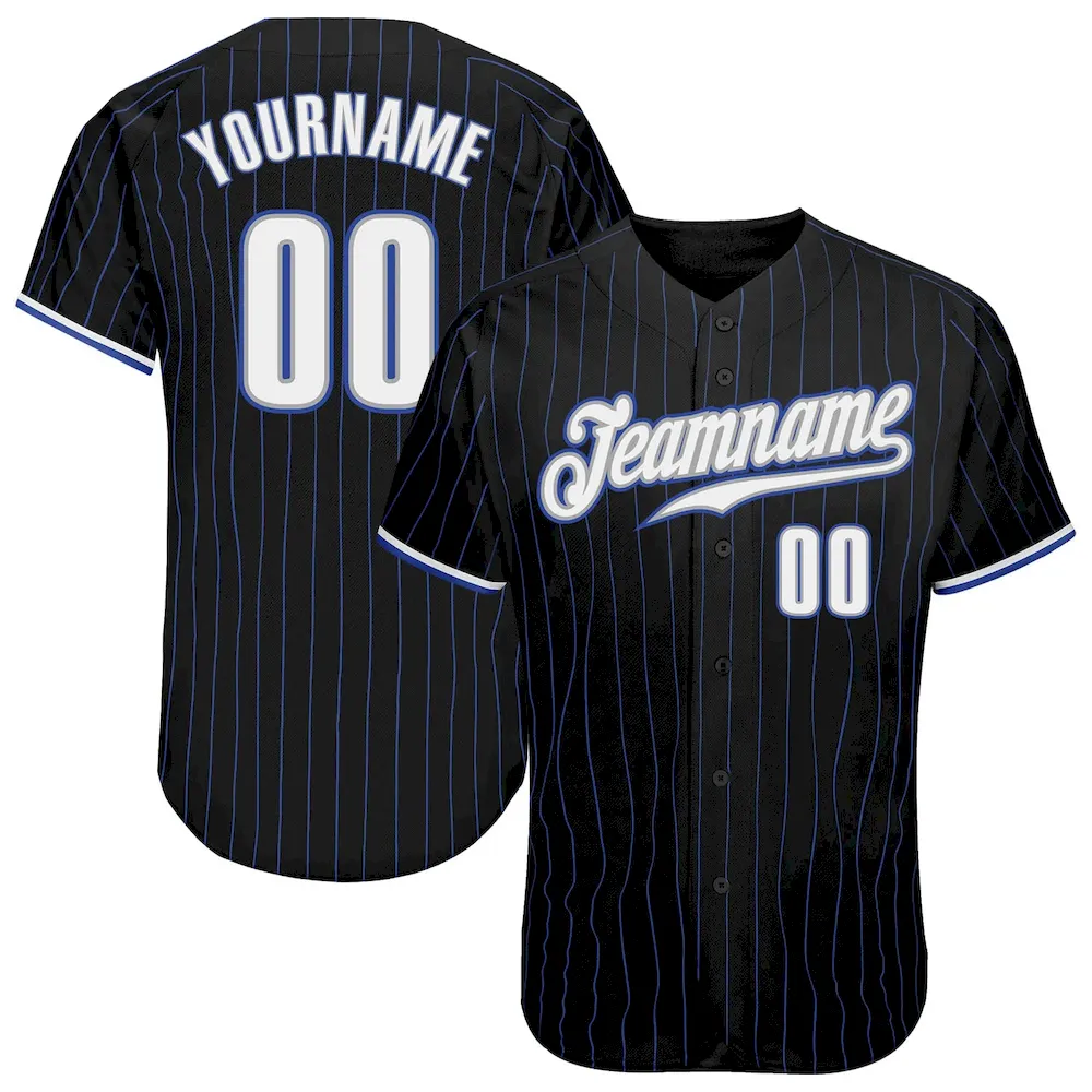 Custom Black Royal Pinstripe White-Gray Authentic Baseball Jersey