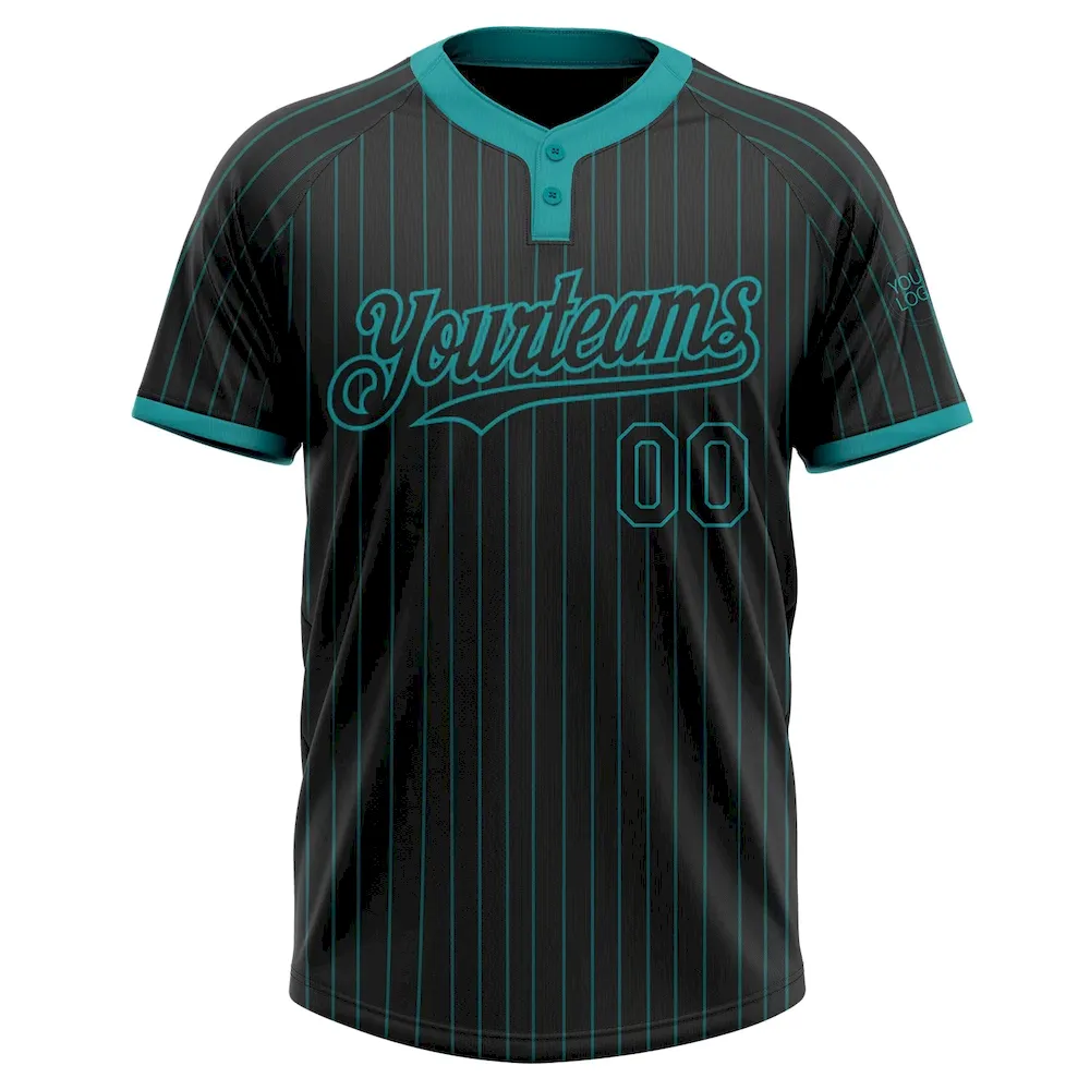 Custom Black Teal Pinstripe Teal Two-Button Unisex Softball Jersey