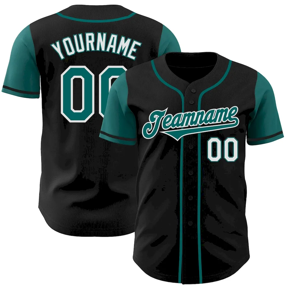 Custom Black Teal-White Authentic Two Tone Baseball Jersey