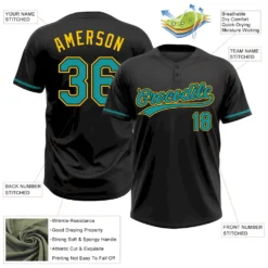 Custom Black Teal-Yellow Two-Button Unisex Softball Jersey