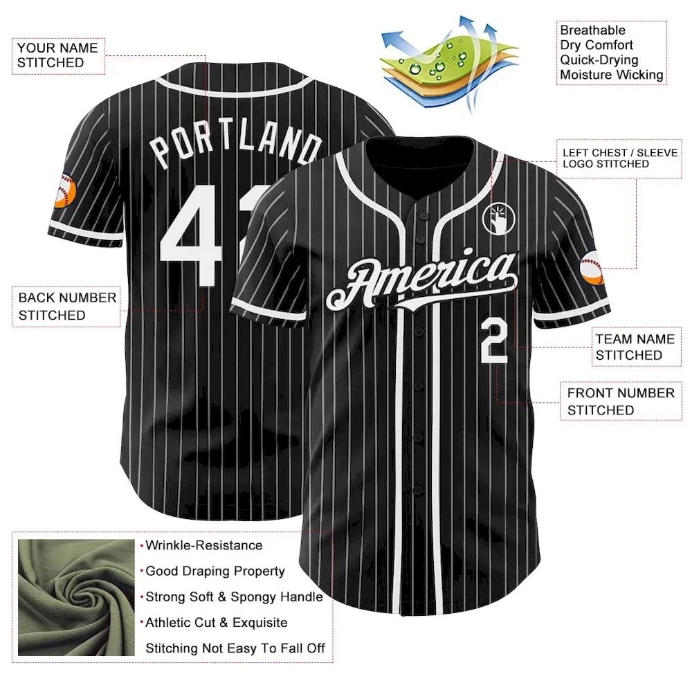 Custom Black White Pinstripe Authentic Baseball Jersey