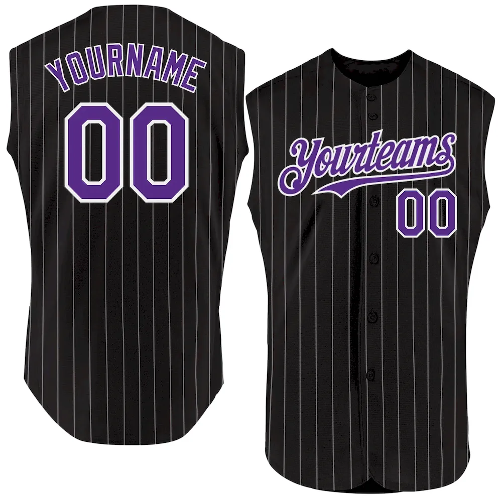 Custom Black White Pinstripe Purple Authentic Sleeveless Baseball Jersey
