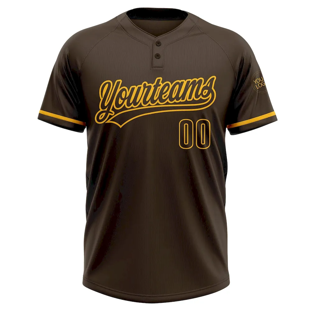 Custom Brown Gold Two-Button Unisex Softball Jersey