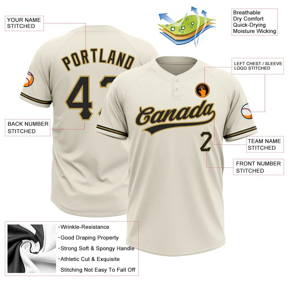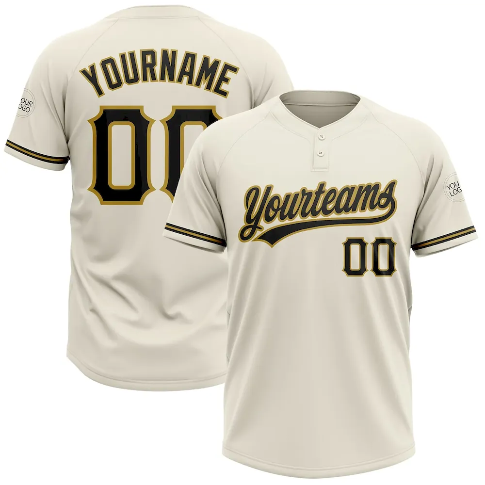 Custom Cream Black-Old Gold Two-Button Unisex Softball Jersey