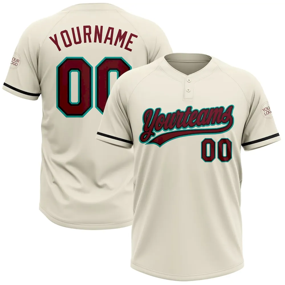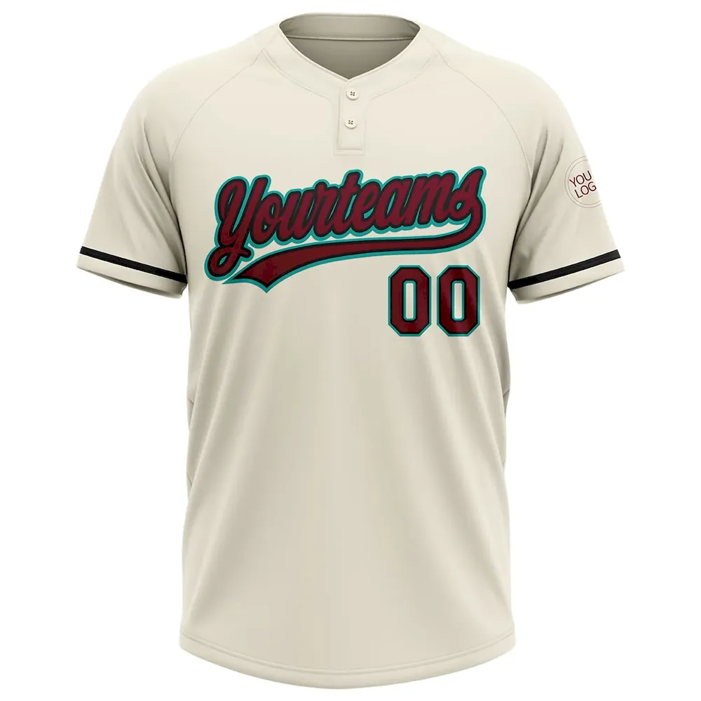 Custom Cream Crimson Black-Aqua Two-Button Unisex Softball Jersey