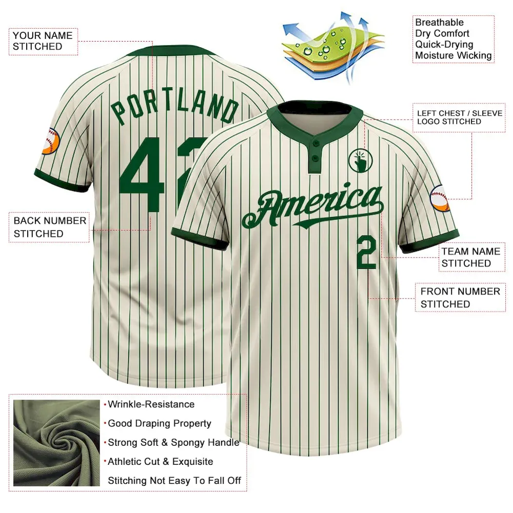 Custom Cream Green Pinstripe Green Two-Button Unisex Softball Jersey