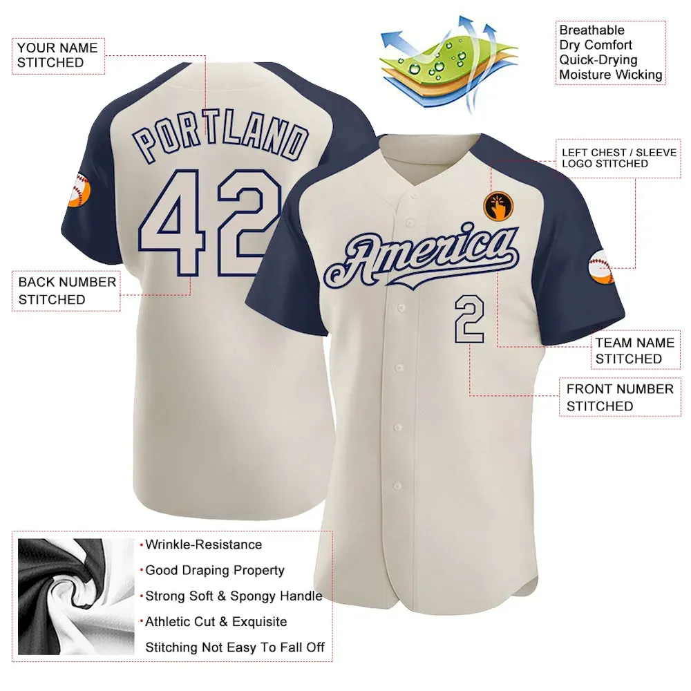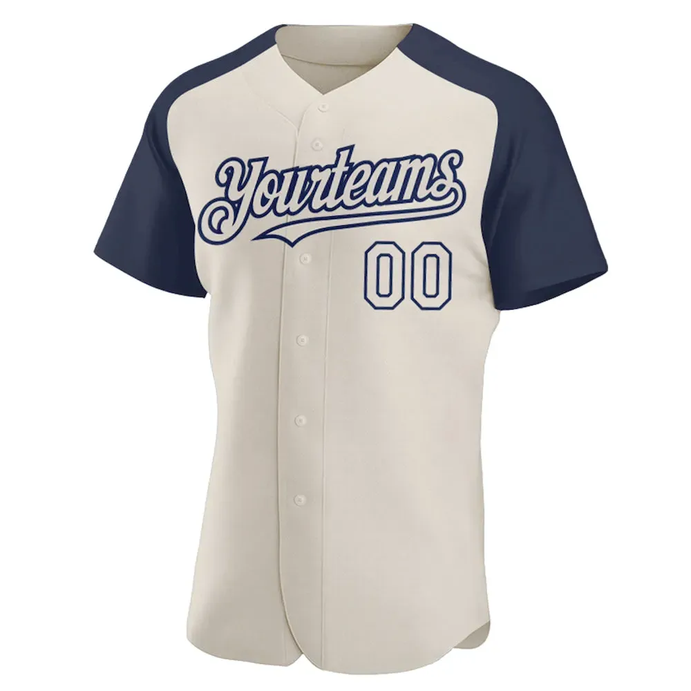 Custom Cream Navy Authentic Raglan Sleeves Baseball Jersey