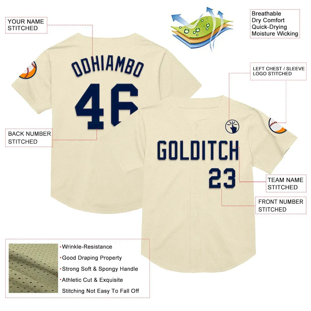 Custom Cream Navy Mesh Authentic Throwback Baseball Jersey